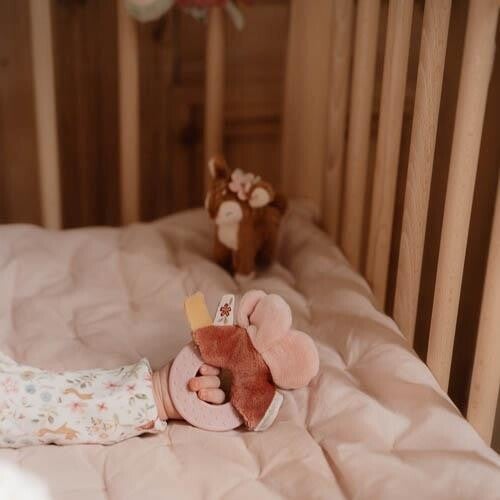 Onze favorieten uit de Fairy Garden collectie vormen samen een perfect kraamcadeau of babyshower geschenk. Deze mooie doos bevat drie zachte producten om mee te slapen, knuffelen en spelen. Het knuffeldoekje met zacht vogeltje is heerlijk om mee te knuffelen, maar is ook leuk voor een spelletje kiekeboe. Het knuffelhertje is altijd klaar voor een stevige knuffel en avonturen vol spel en fantasie. Deze set bevat ook een bijtring voor verzachting als er tandjes doorkomen. En het leuke bloemetje op de ring stimuleert de hand-oogcoördinatie en de nieuwsgierigheid van kindjes. De drie producten zijn samen verpakt in één mooie geschenkdoos.